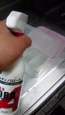 容器の内側とフタの裏側に、アルコールを吹きつけます。