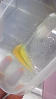 ⑤上記の汁を容器を逆さまにして捨てます。この時はペーパータオルで拭きません。