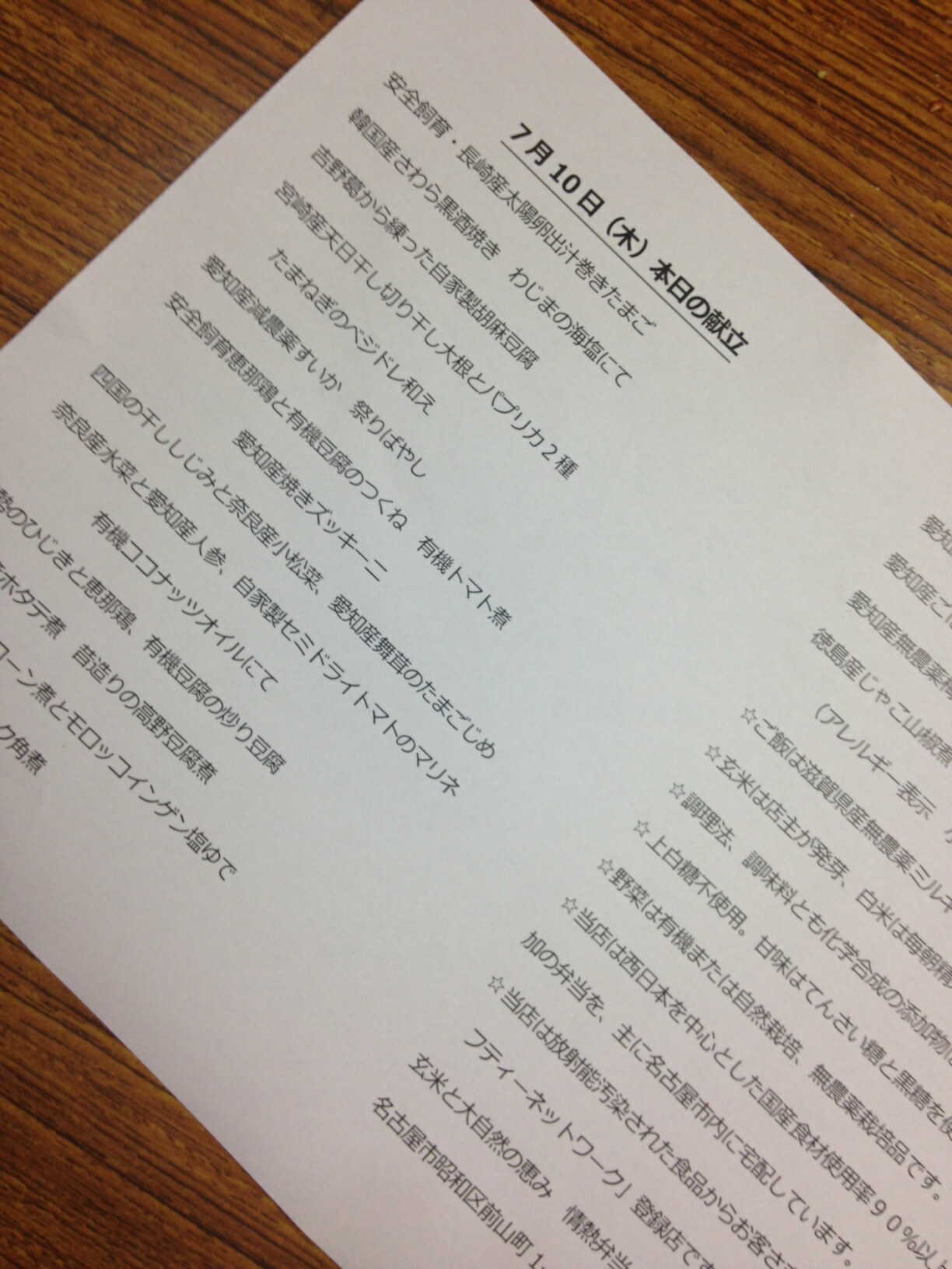 情熱弁当をご注文の時は、ぜひメニュー表の裏面もチェックしてくださいね♪